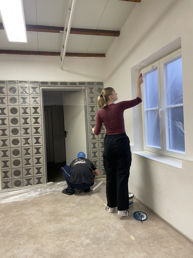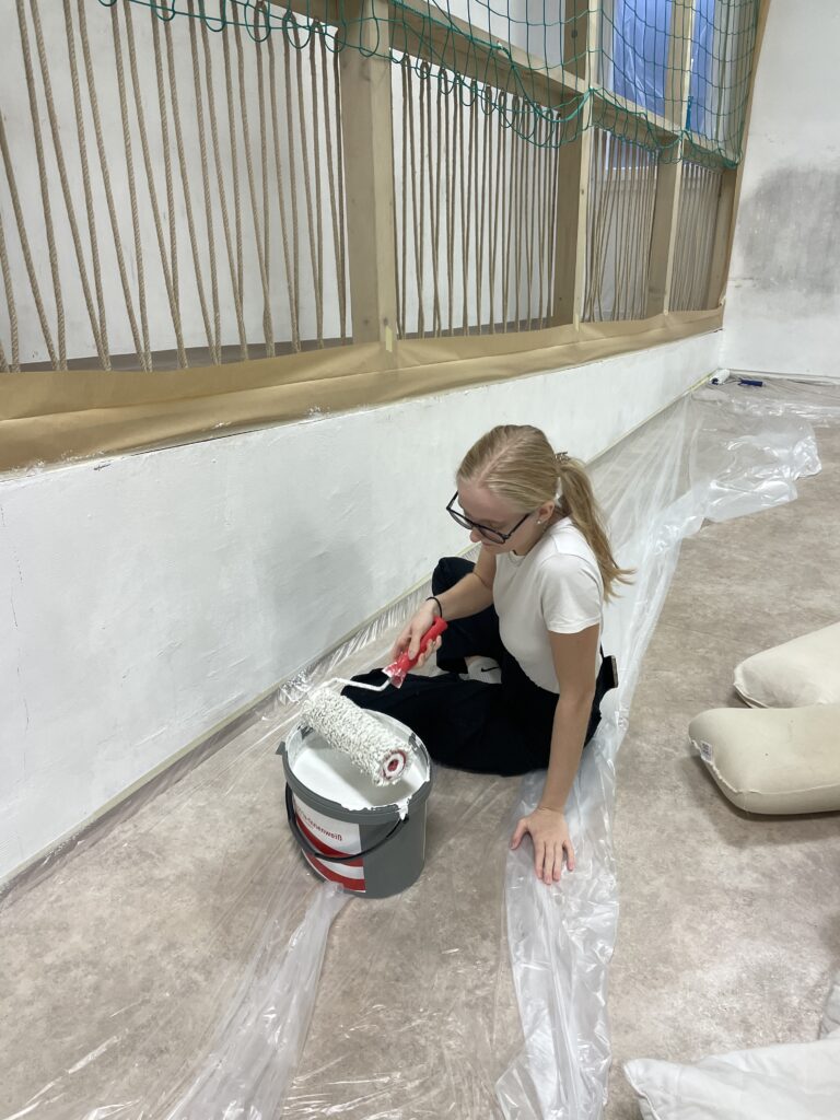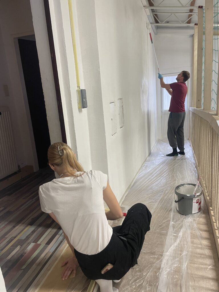 Wie immer gab es auch ein wichtiges Projekt für unser Heim: Dieses Mal stand die Renovierung des Spieleraums/Turnsaals an. Mit Farbe und Pinsel schwangen wir die Arbeitsgeräte und ließen die Wände in frischem Weiß erstrahlen. Dank unseres tatkräftigen Einsatzes ist der Raum nun bereit für viele neue Spiele und Turnstunden. Wir sind stolz auf das Ergebnis!